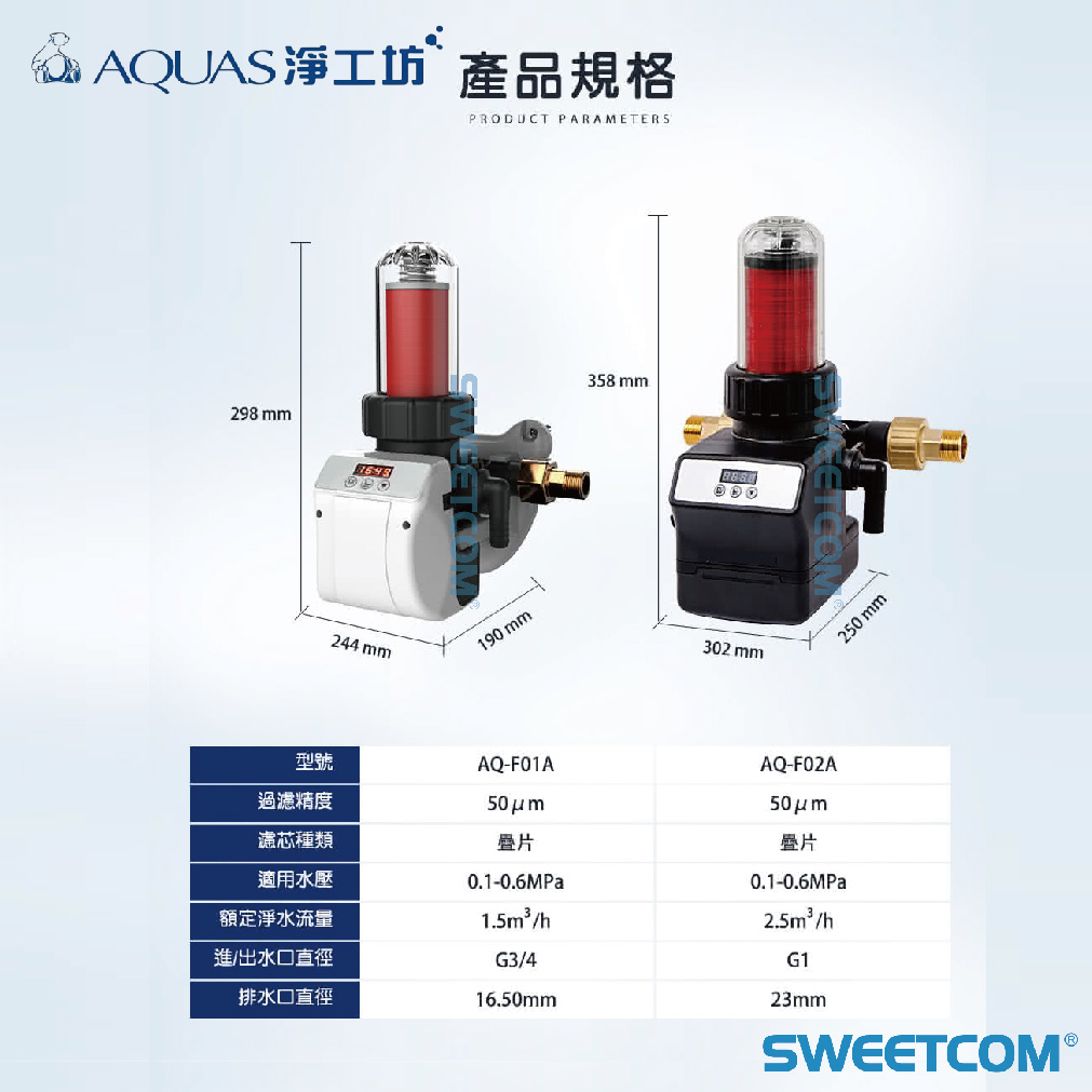 AQUAS淨工坊|自動前置過濾器 AQ-F01A NT$20,000 促銷價NT$13,520