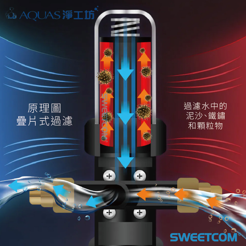 ➛過濾水中的泥沙、鐵鏽和顆粒物