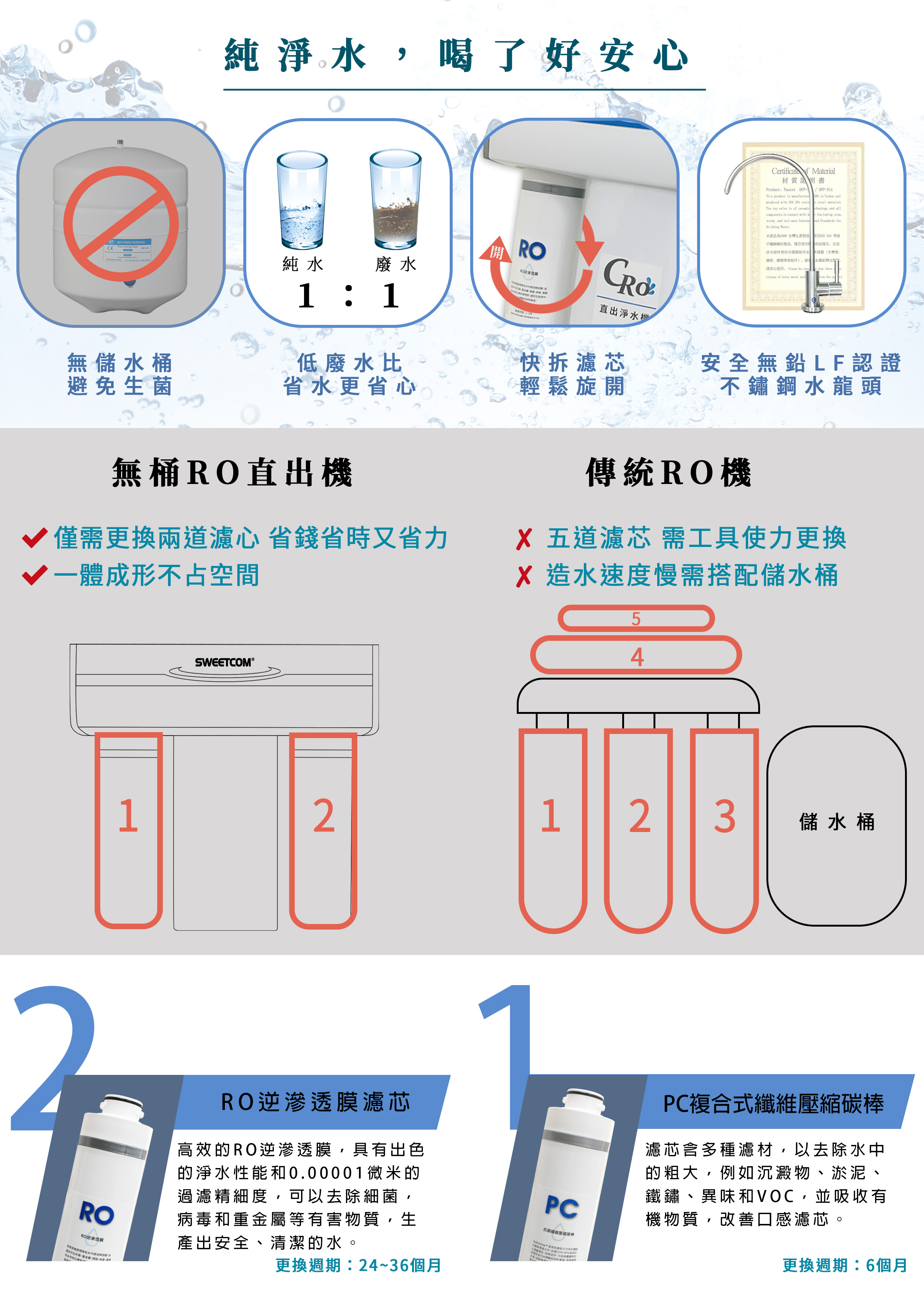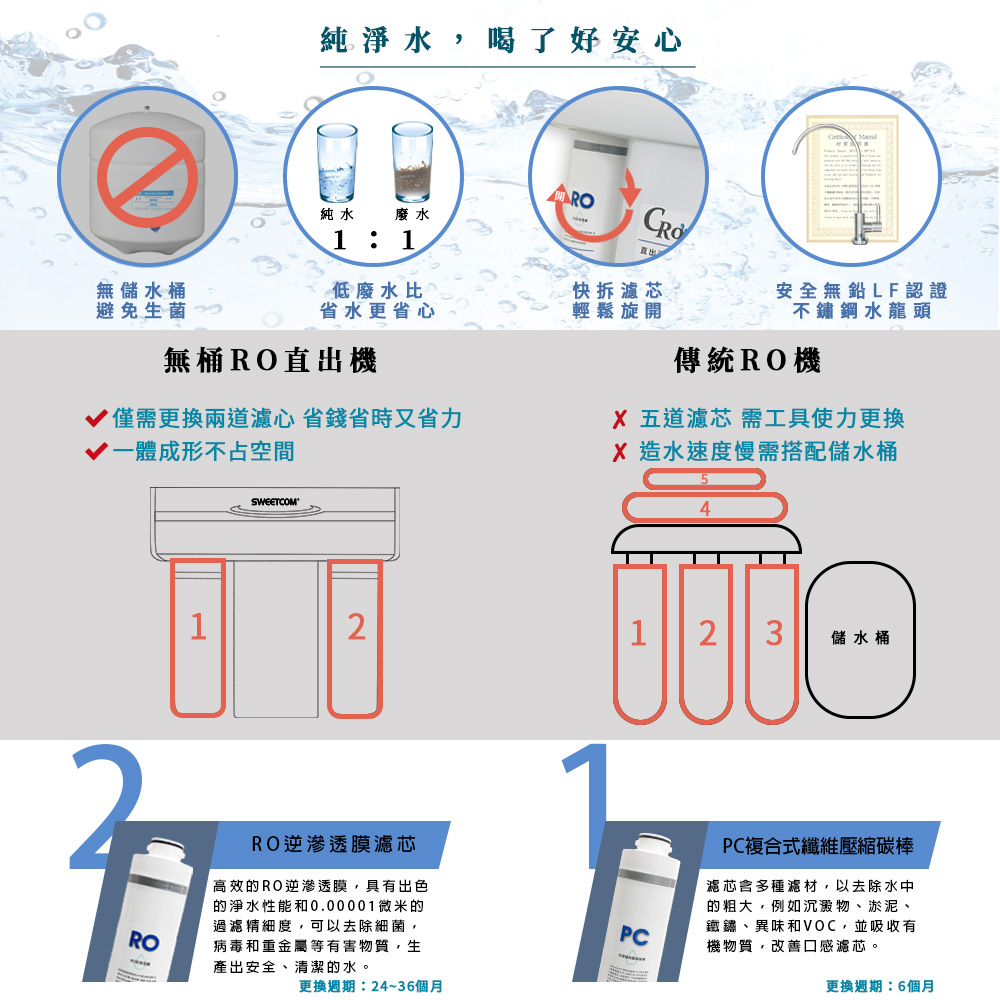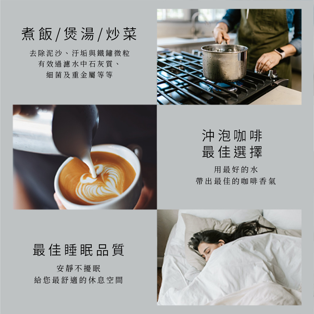 ● 主機尺寸:長408 x寬153 x高395(mm) ● 鵝頸尺寸:高250 x深120(mm) ● 總淨水量:600加侖 ● 淨水流速:每分鐘1.6公升/分鐘 ● 進水壓力:0.2~0.5Mpa ● 適用水溫:5~38℃ ● 重量:機身約6.75kg ,鵝頸0.5kg ● 搭配無鉛不鏽鋼LF認證龍頭