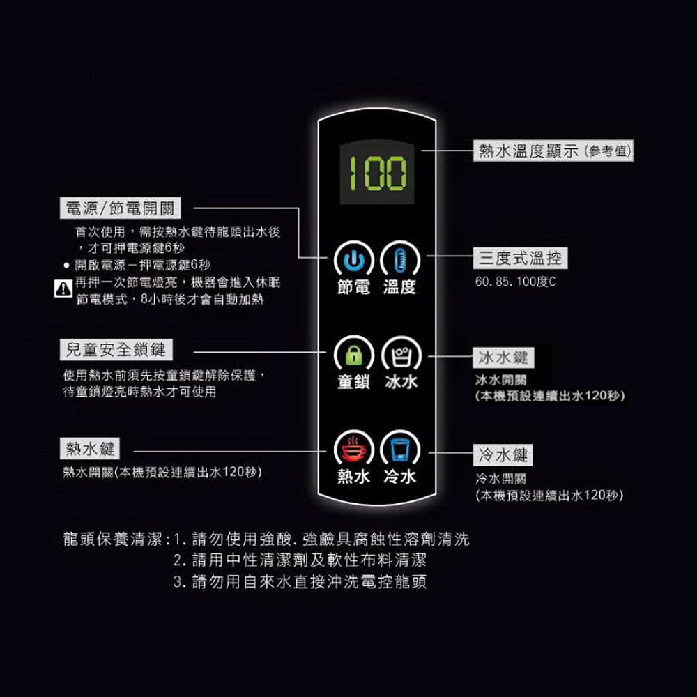 ★首次使用,需按熱水鍵待龍頭出水後,才可押電源鍵6秒