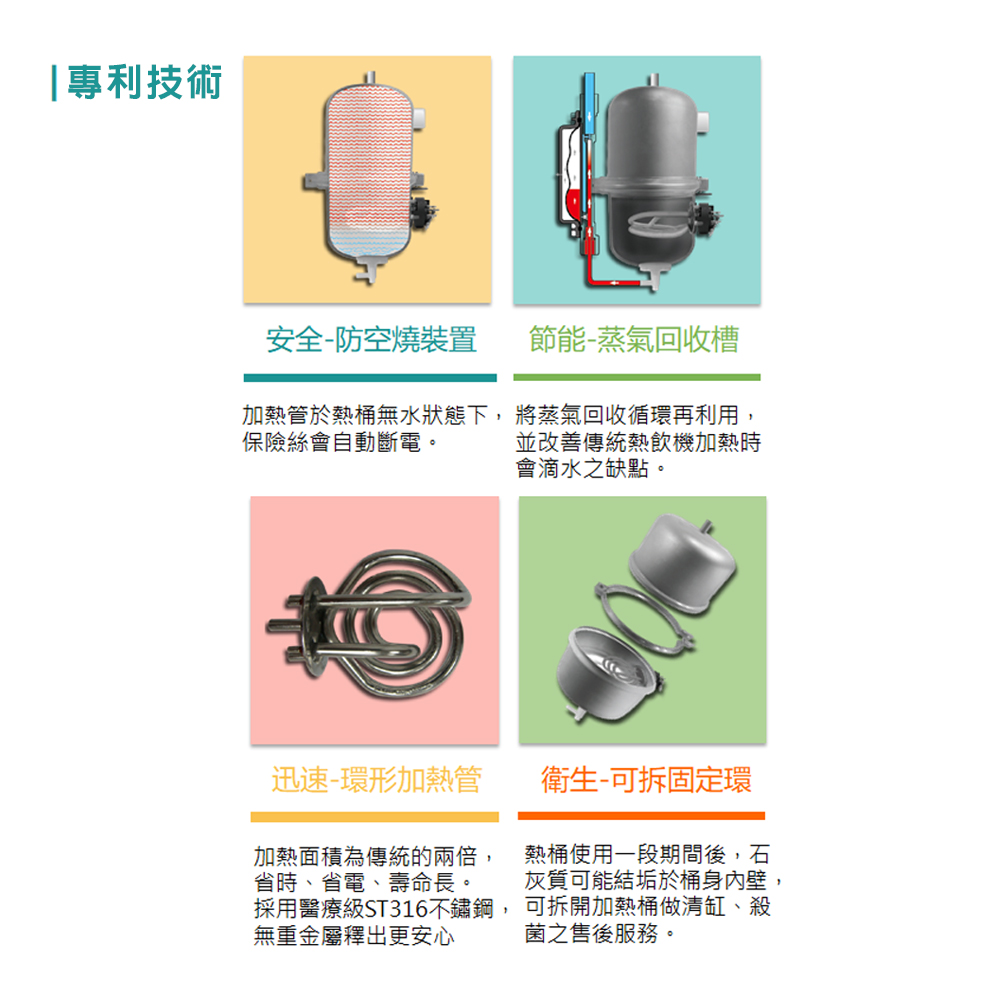 ● 可拆式不銹鋼熱桶,方便清洗、殺菌之售後服務
