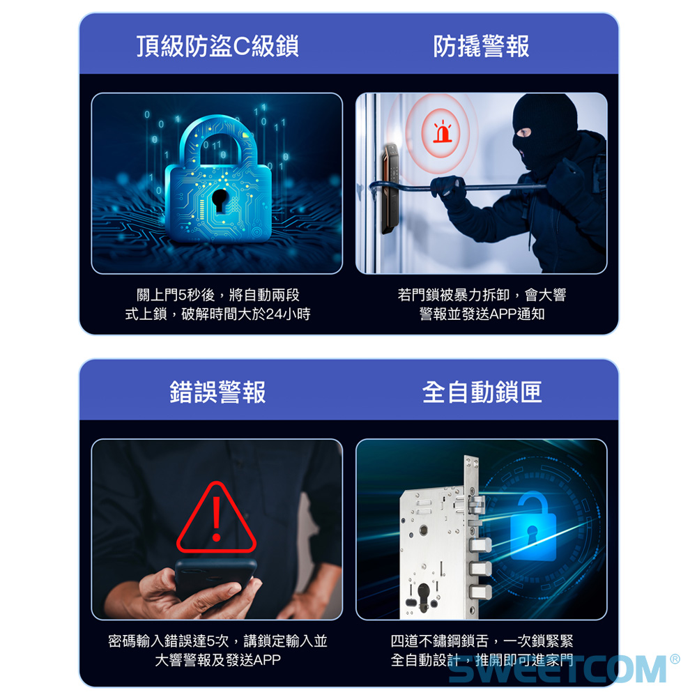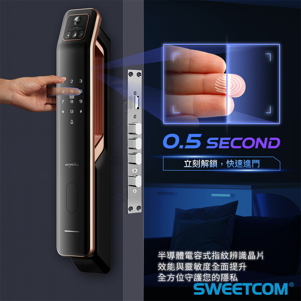 ● 360度指紋晶片,0.5秒立即解鎖快速進門