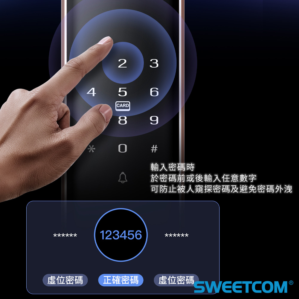● 防止他人偷窺給您多一分保障,密碼前或後可輸入任意數字